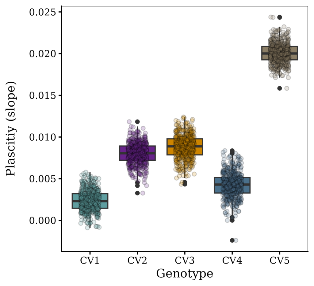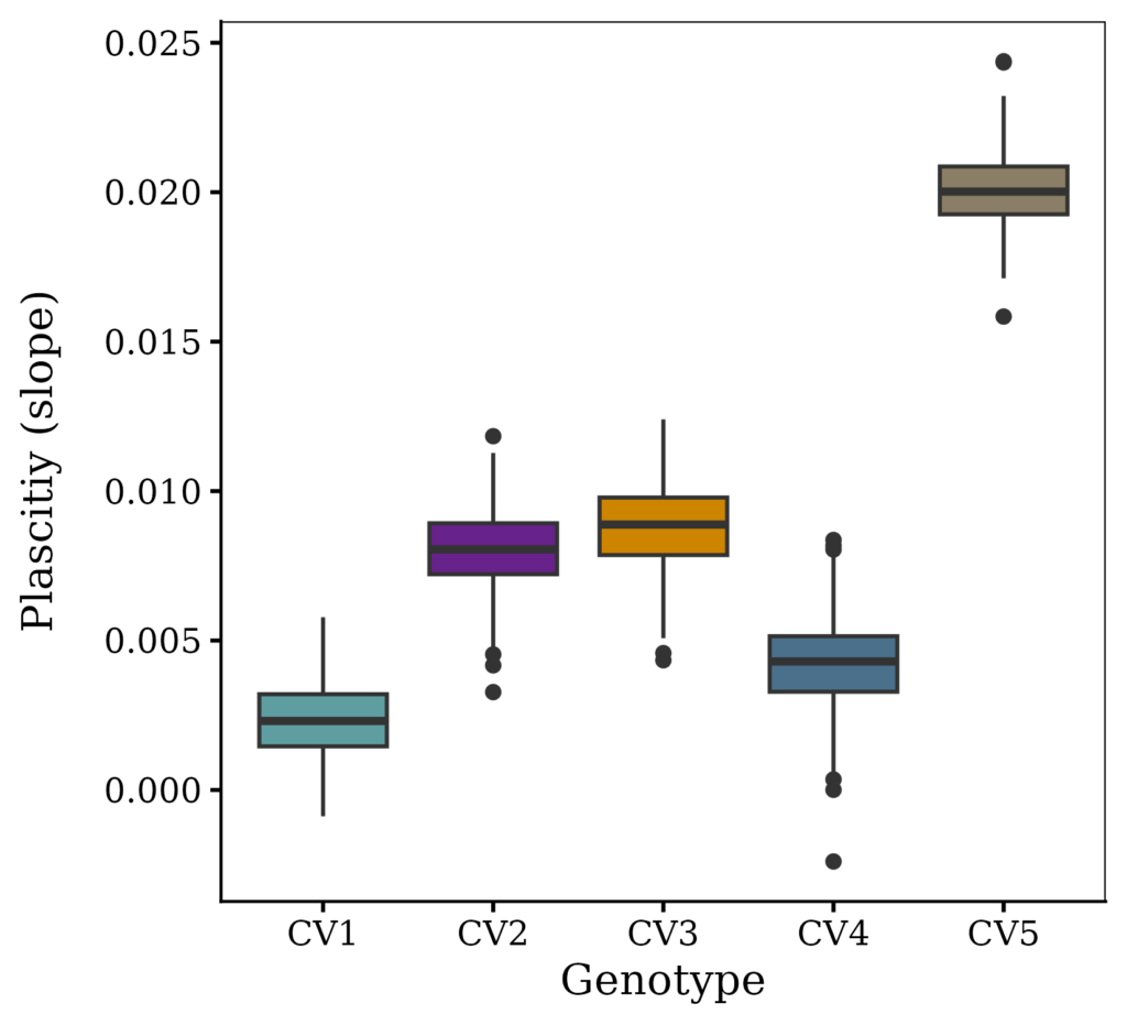 labs(x="Genotype", y="Plascitiy (slope)") +