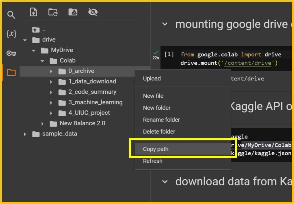 I saved the file kaggle.json in my google drive, and file path is /content/drive/MyDrive/Colab/0_archive