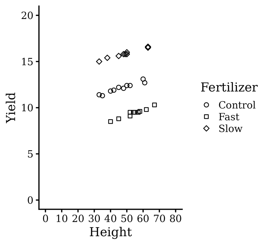 geom_point (aes(shape=Fertilizer), color="black") +