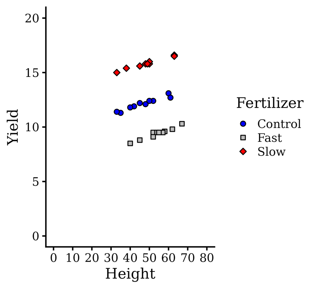 geom_point (aes(fill=Fertilizer, shape=Fertilizer), color="black") +